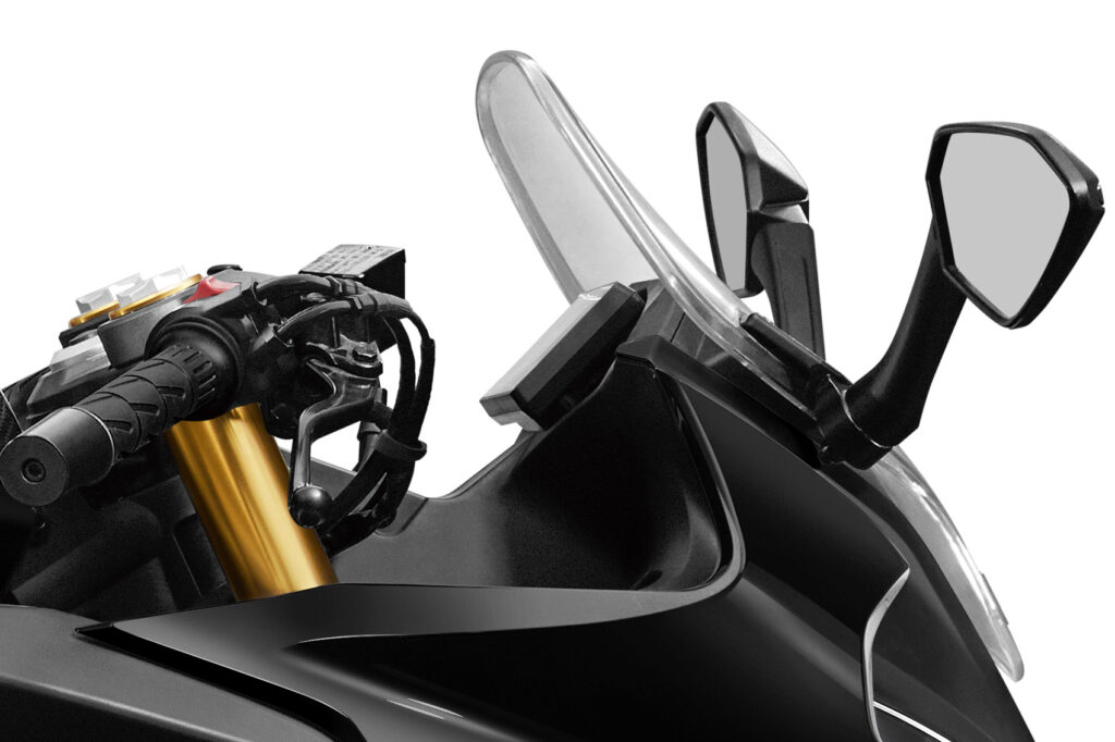 Disco único delantero de Φ292 mm, pinza opuesta de 4 pistones y disco único trasero de Φ220 mm, pinza flotante de un solo pistón, fuerte fuerza de frenado, lleno de seguridad. El sistema de frenos está listo para afrontar la conducción diaria y los rigores de la pista. En caso de frenada de emergencia, el ABS inteligente reduce la posibilidad de bloquear las ruedas.