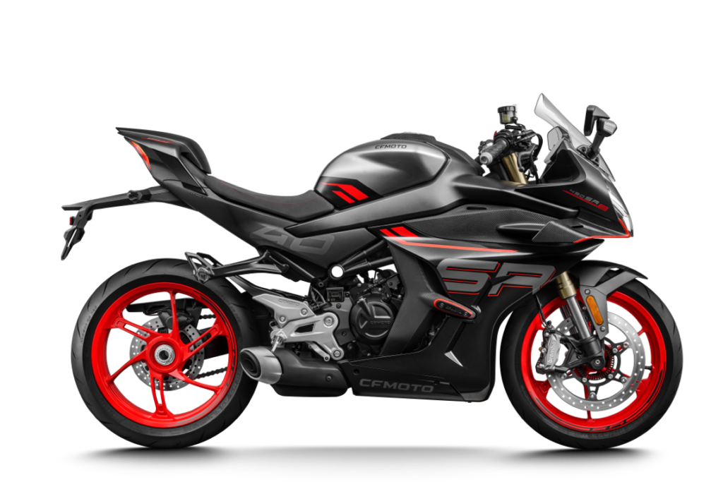 Inspirado en las carreras profesionales, el diseño exterior se modifica para optimizar la aerodinamia. El potente basculante único amplifica la destreza en las carreras. La evolución hacia un alerón delantero ahuecado en forma de aleta de tiburón permite que el flujo de aire se deslice sin problemas sobre el cuerpo. El escape oculto se integra perfectamente con la parte trasera, creando una declaración visualmente impactante.