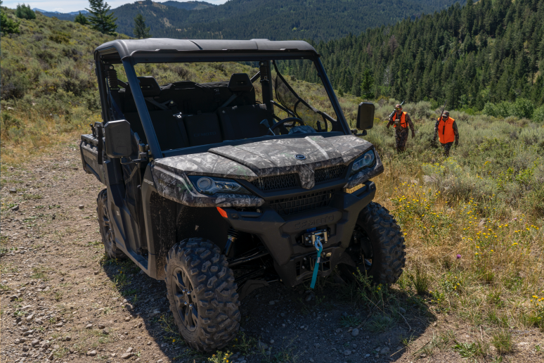 UFORCE 1000 XL proporciona modo de conducción 2WD/4WD conmutable y función de bloqueo de conducción 4WD y está equipado con un sistema de transmisión CV-Tech. Los usuarios pueden conducir por terrenos accidentados con tracción estable o utilizar una tracción en dos ruedas para afrontar campos abiertos. Las llantas de aleación de aluminio de 12 pulgadas estándar y los neumáticos de 27 pulgadas combinados con una distancia mínima al suelo de 280 mm garantizan que la transitabilidad esté totalmente garantizada y que haya suficiente espacio para lidiar con caminos embarrados. Los usuarios y amigos pueden disfrutar juntos de la satisfacción y la diversión de la conducción todoterreno por placer.