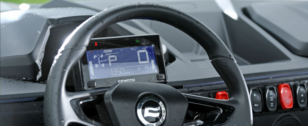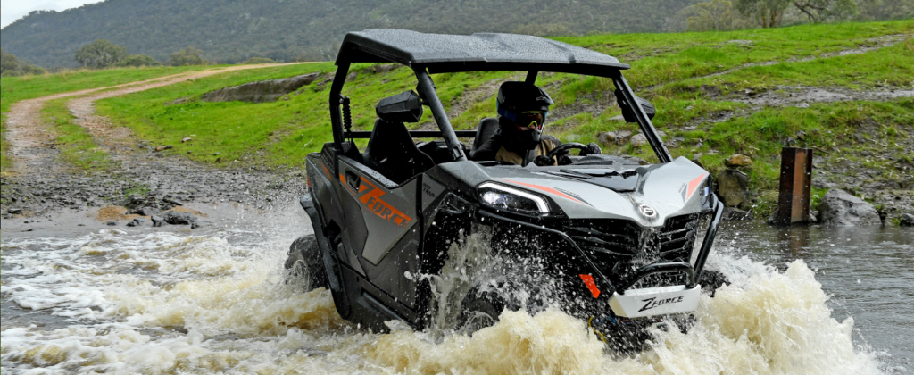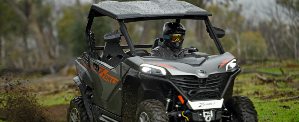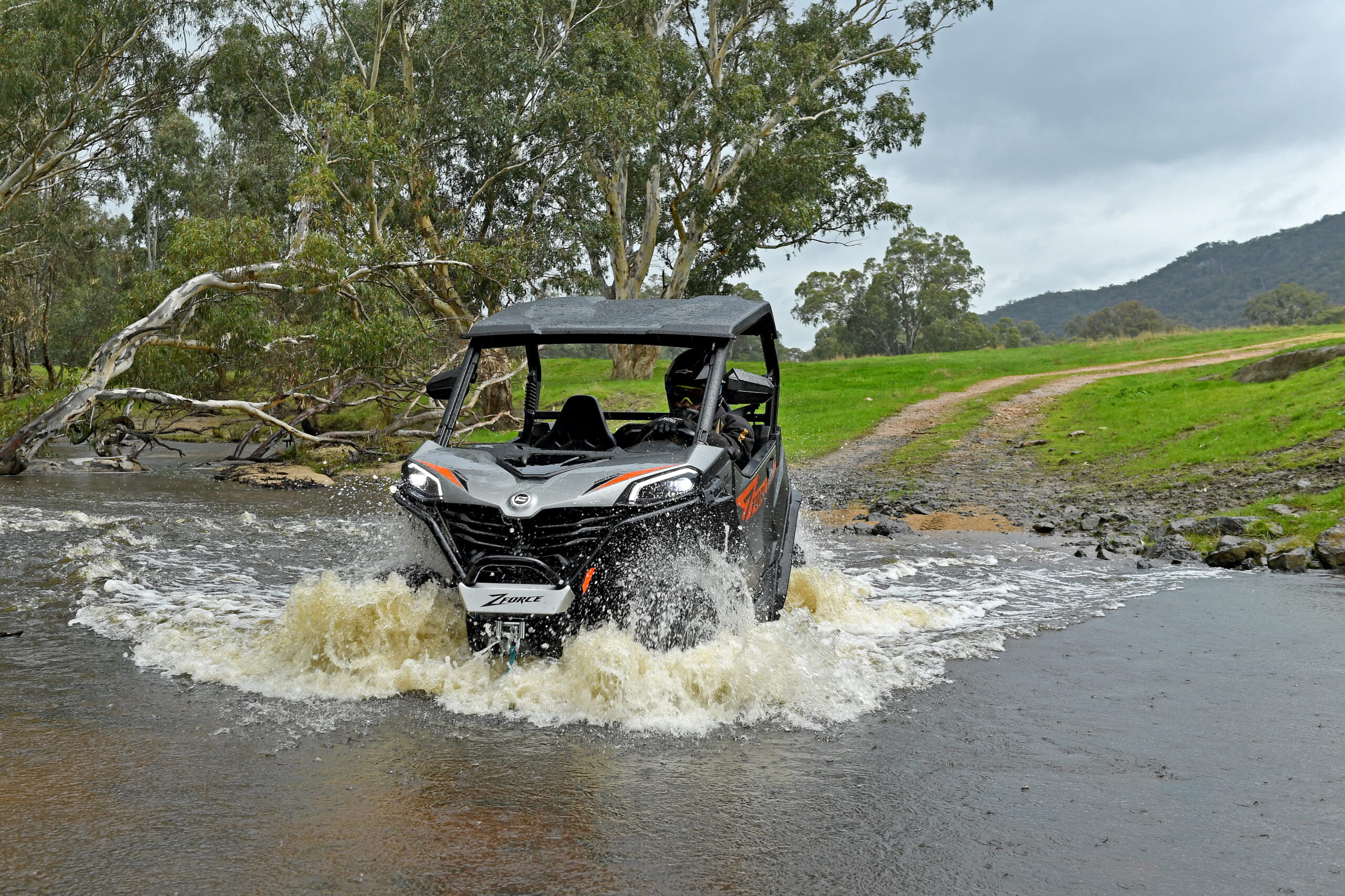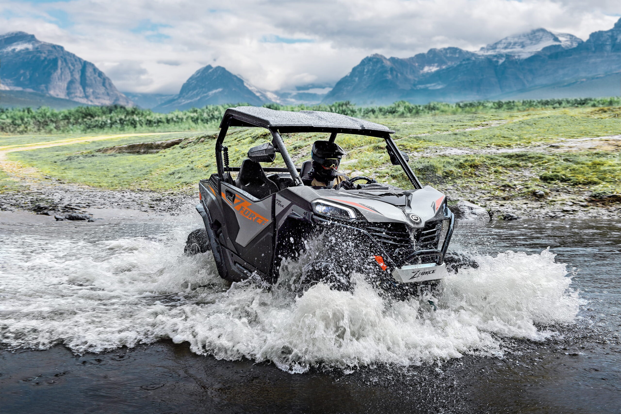 El motor V-twin de cuatro tiempos, inyección de combustible y refrigeración líquida de 800 cc de CFMOTO se combina con una transmisión continuamente variable (CVT), lo que genera 62 caballos de fuerza. El SSV se puede detener en un instante gracias a sus frenos de disco hidráulicos en las cuatro ruedas
